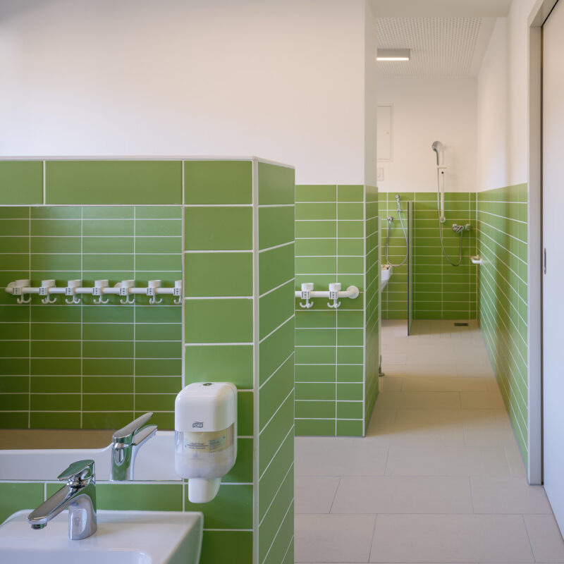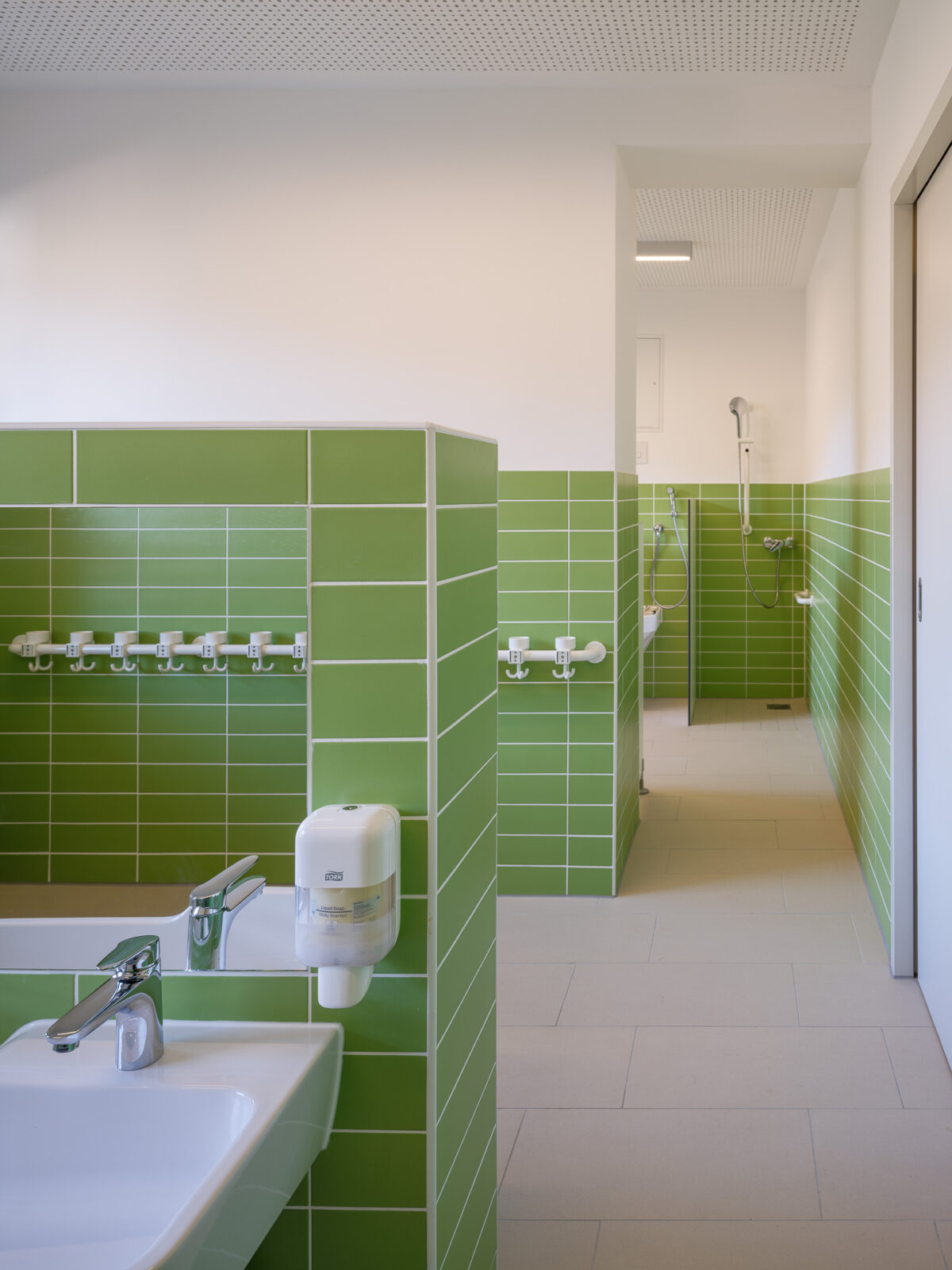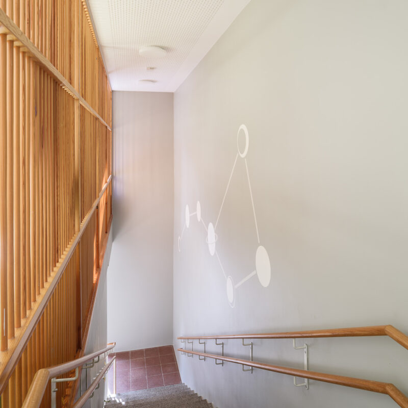 Darüber hinaus wurde das Gebäude energetisch auf den neuesten Stand gebracht. Eine Wärmepumpe in Kombination mit einem Wärmedämmverbundsystem sorgt für eine effiziente Energieversorgung. Auf der Südseite gewährleistet ein neuer außenliegender Sonnenschutz auch an heißen Sommertagen ein angenehmes Raumklima.